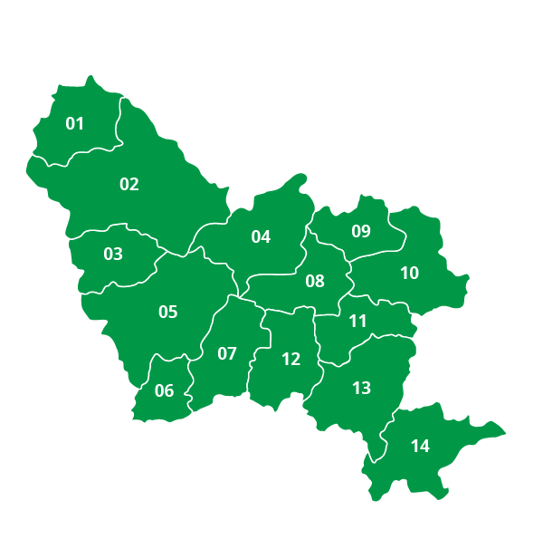 01 São Tomás de Aquino02 São Sebastião do Paraíso03 Itamogi / 04 Jacuí05 Monte Santo de Minas06 Arceburgo / 07 Guaranésia08 São Pedro da União09 Bom Jesus da Penha10 Nova Resende11 Juruaia / 12 Guaxupé13 Muzambinho / 14 Cabo Verde